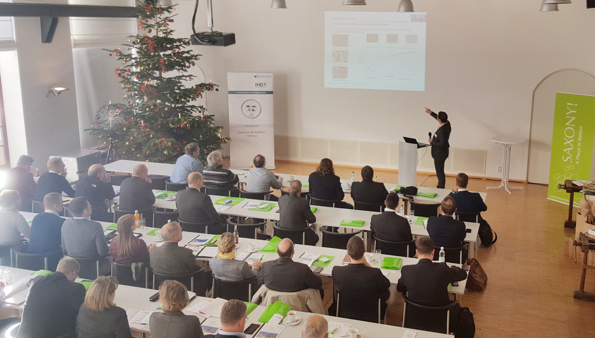 Das vom IHD mit Unterstützung der Wirtschaftsförderung Sachsen und weiteren Partnern organisierte 4. Interdisziplinäre Fahrzeugkolloquium ist ein bewährtes Forum für den Fachaustausch und Innovationstransfer zwischen den Branchen Luftfahrt, Automobil, Schienen- und Wasserfahrzeugbau. Im Fokus steht alles was zum Interieur gehört: wie etwa Materialien, Leichtbau, Elektronik, Design oder Konstruktion. Am 5. Dezember kamen rund 50 Teilnehmer in den Werkstätten Hellerau zusammen und folgten den Vorträgen zu Neuentwicklungen und Nachhaltigkeitsfragen wie etwa Carbonfaserrecycling.